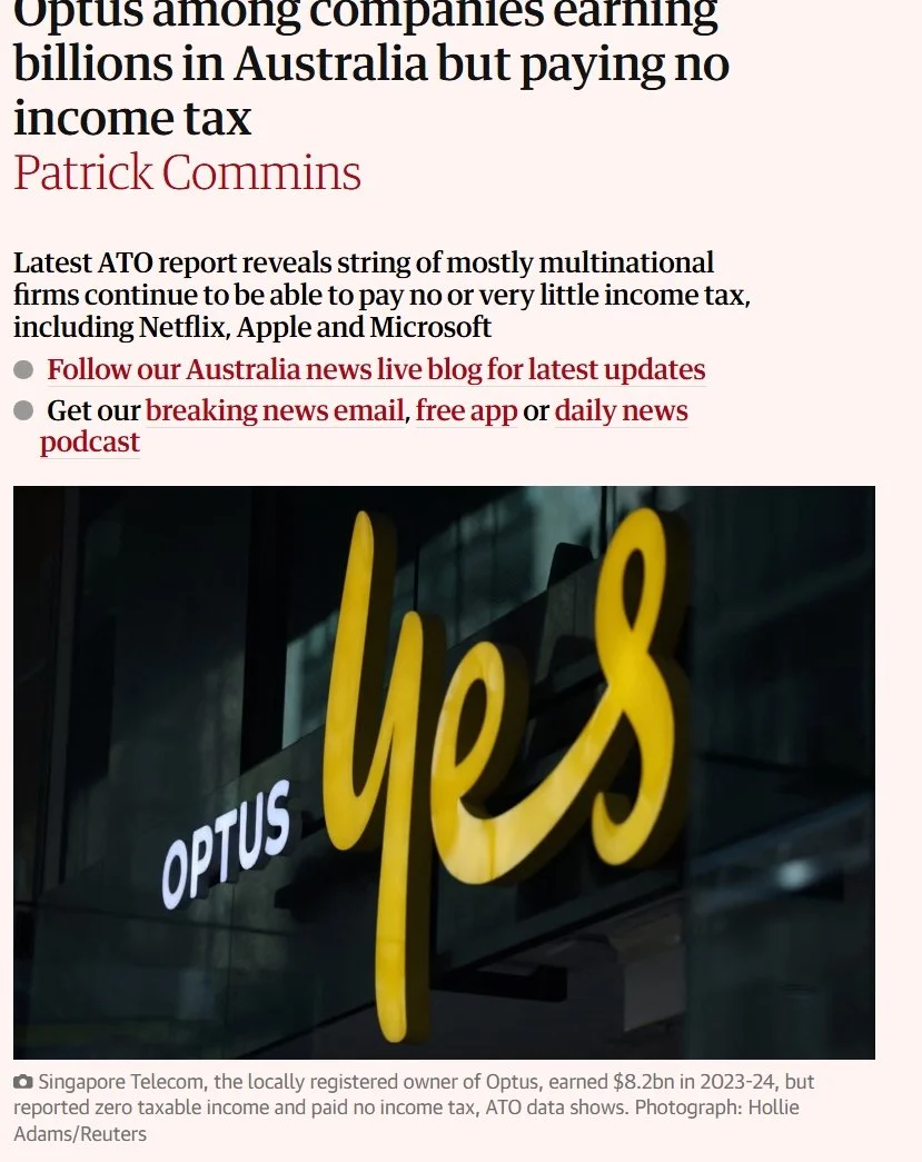 Optus among companies earning billions in Australia but paying no income tax