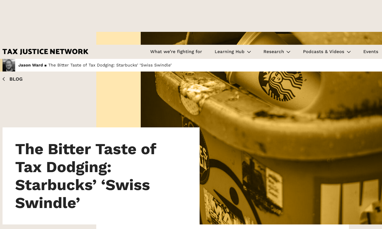The Tax Justice Network website has published a blog by CICTAR Principal Analyst, Jason Ward entitled ‘The Bitter Taste of Tax Dodging: Starbucks’ ‘Swiss Swindle’. The blog highlights the key role of Switzerland in the global commodity trade. Starbucks provides a very clear example of how trading through Switzerland allows corporations to shift profits from producer countries in the global south into the rich, low tax Switzerland.
